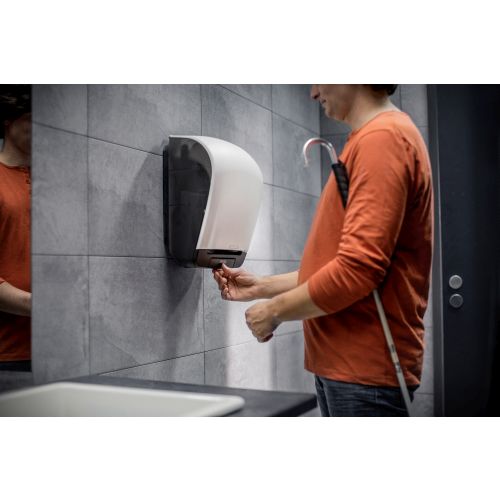 * Kontrollierter Verbrauch, minimaler Zugwiderstand und hohe Kapazität – 420–800 Blätter pro Rolle reichen je nach Qualität für 360–450 Mal Händetrocknen.
